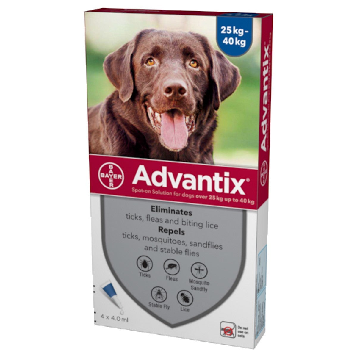 Advantix Spot-On Solution for Extra Large Dogs is indicated for the treatment and prevention of flea and tick infestations in dogs weighing over 25kg.