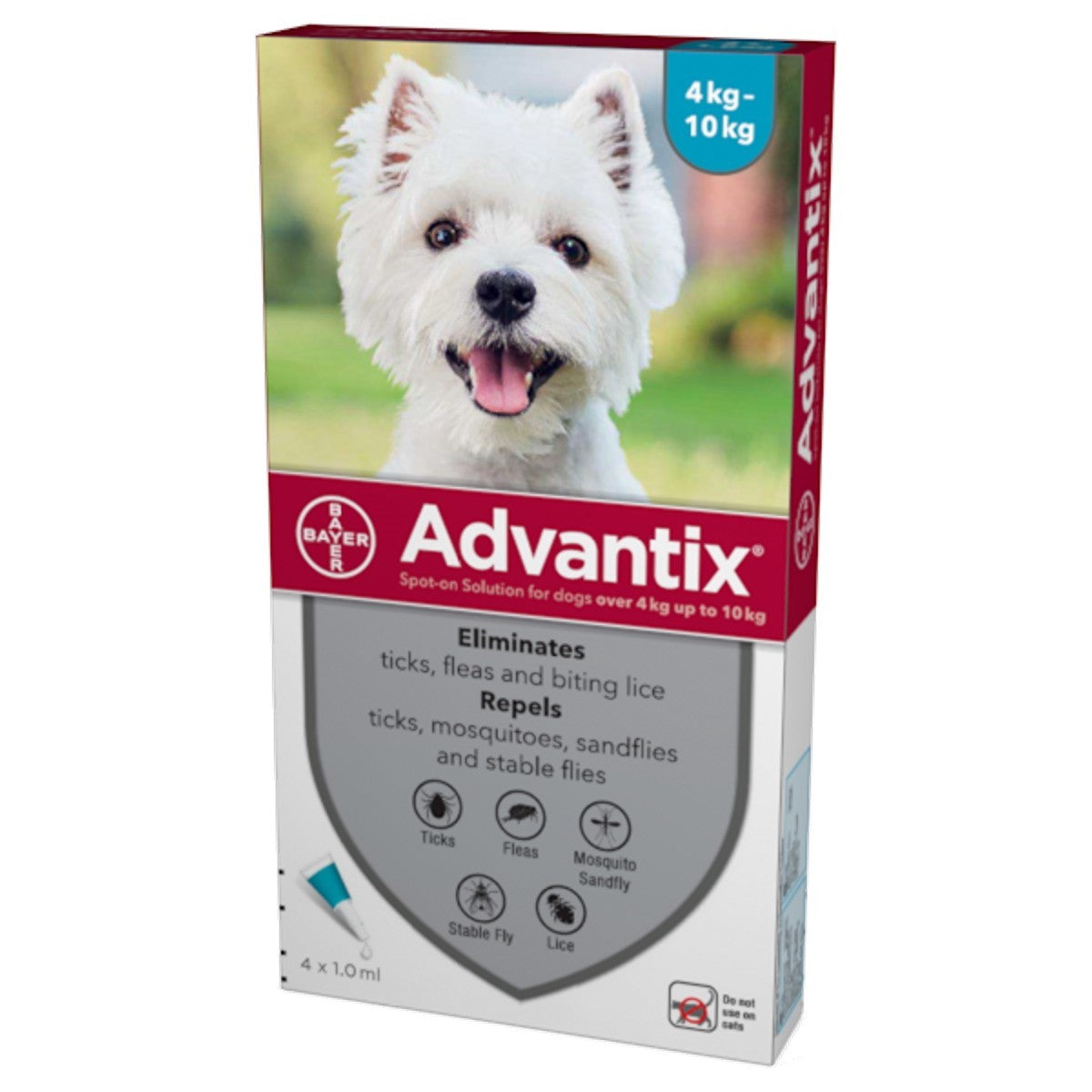 Advantix Spot-On Solution for Medium Dogs is indicated for the treatment and prevention of flea and tick infestations in dogs weighing between 4 and 10kg.