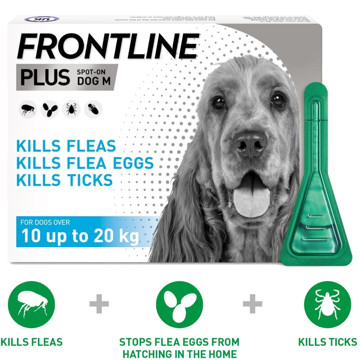 FRONTLINE Plus for Medium Dogs is a topical application for the treatment of flea infestations, alone or in association with ticks and/or biting lice in medium breed dogs weighing >10 - 20kg.